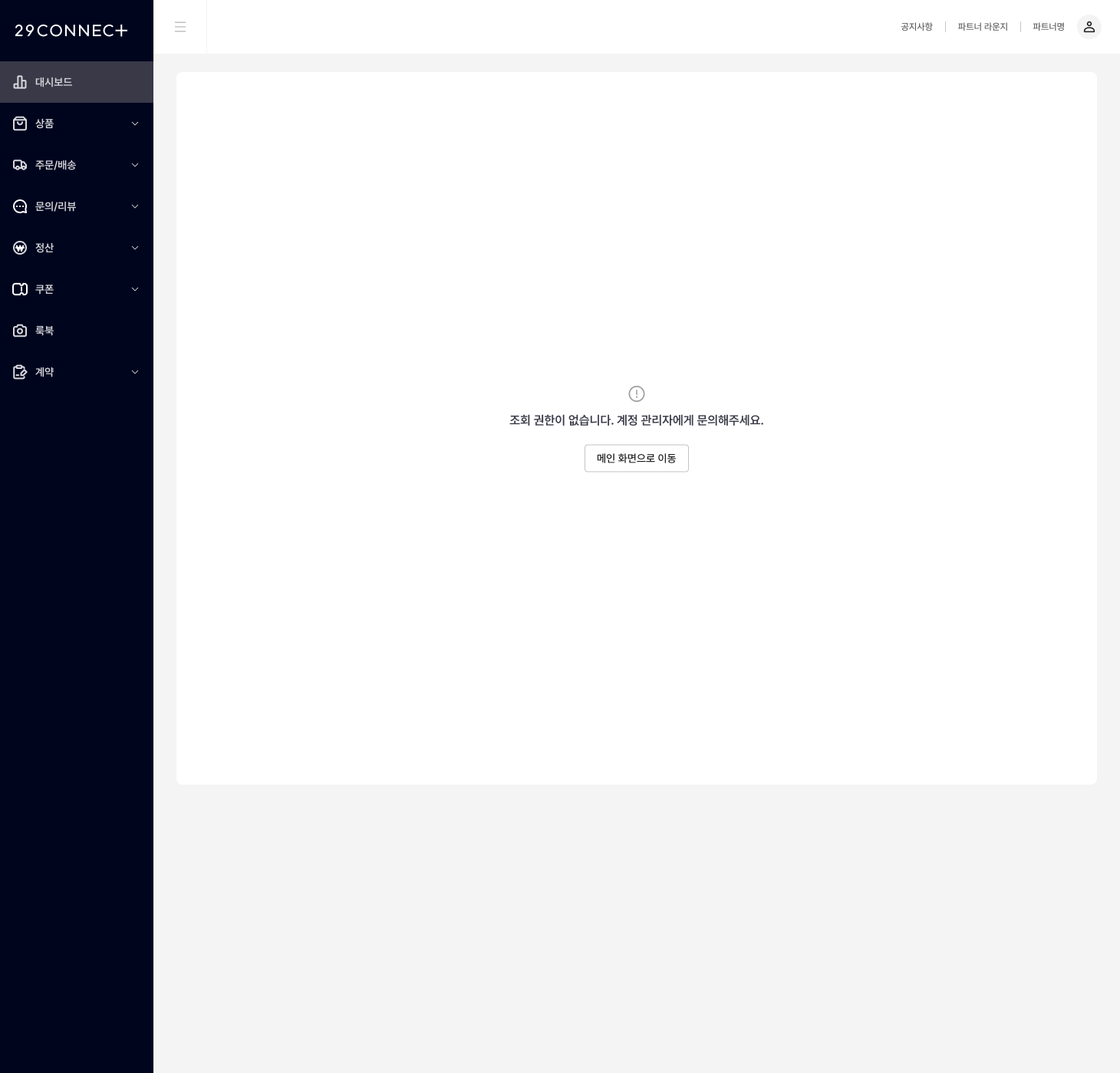 주문/배송 권한이 없는 일반 계정 접속 시 대시보드 화면