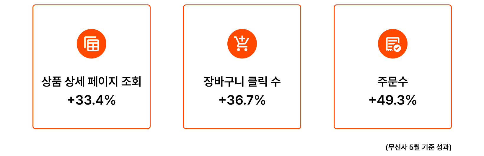 그 외에도 먼저 무신사에서 상품광고를 이용해본 파트너사는 그렇지 않은 그룹에 비해 상품상세페이지 PV, 장바구니 클릭 수, 주문 수 등 주요 지표들이 눈에 띄게 상승했습니다.