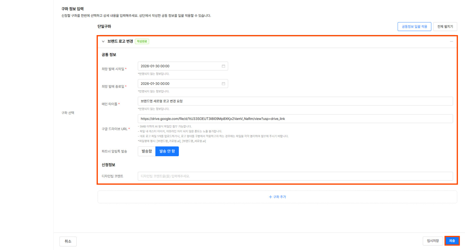 | 4. 브랜드 로고 변경을 위한 필수 정보를 입력합니다. |