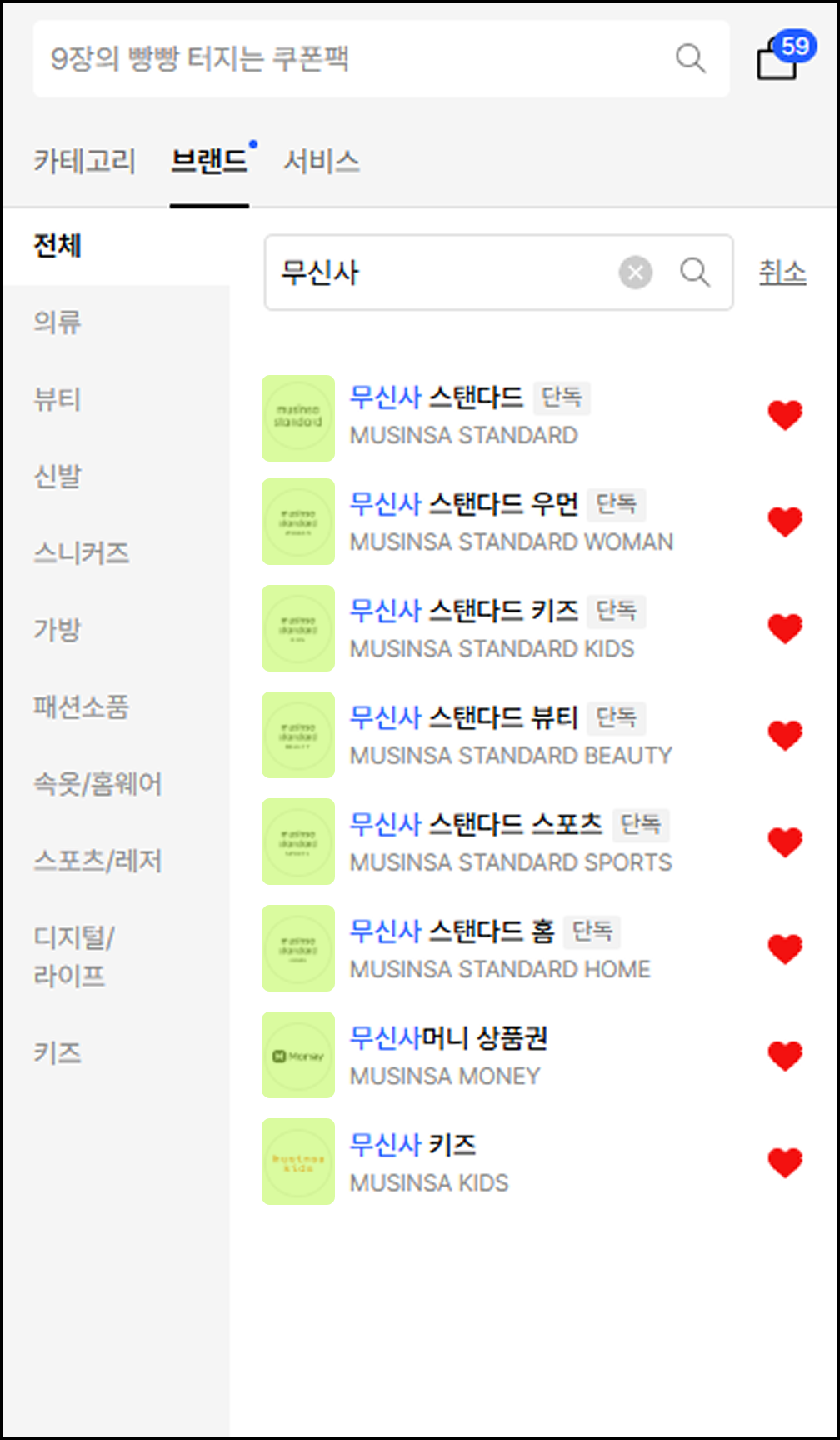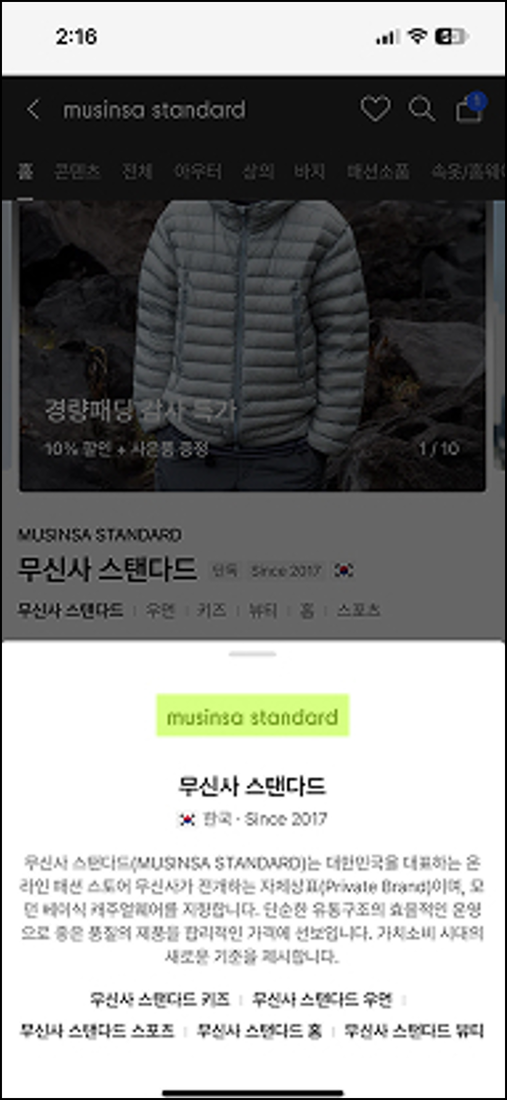 - 무신사 스토어에서는 브랜드 로고가 다양한 영역에 노출됩니다.